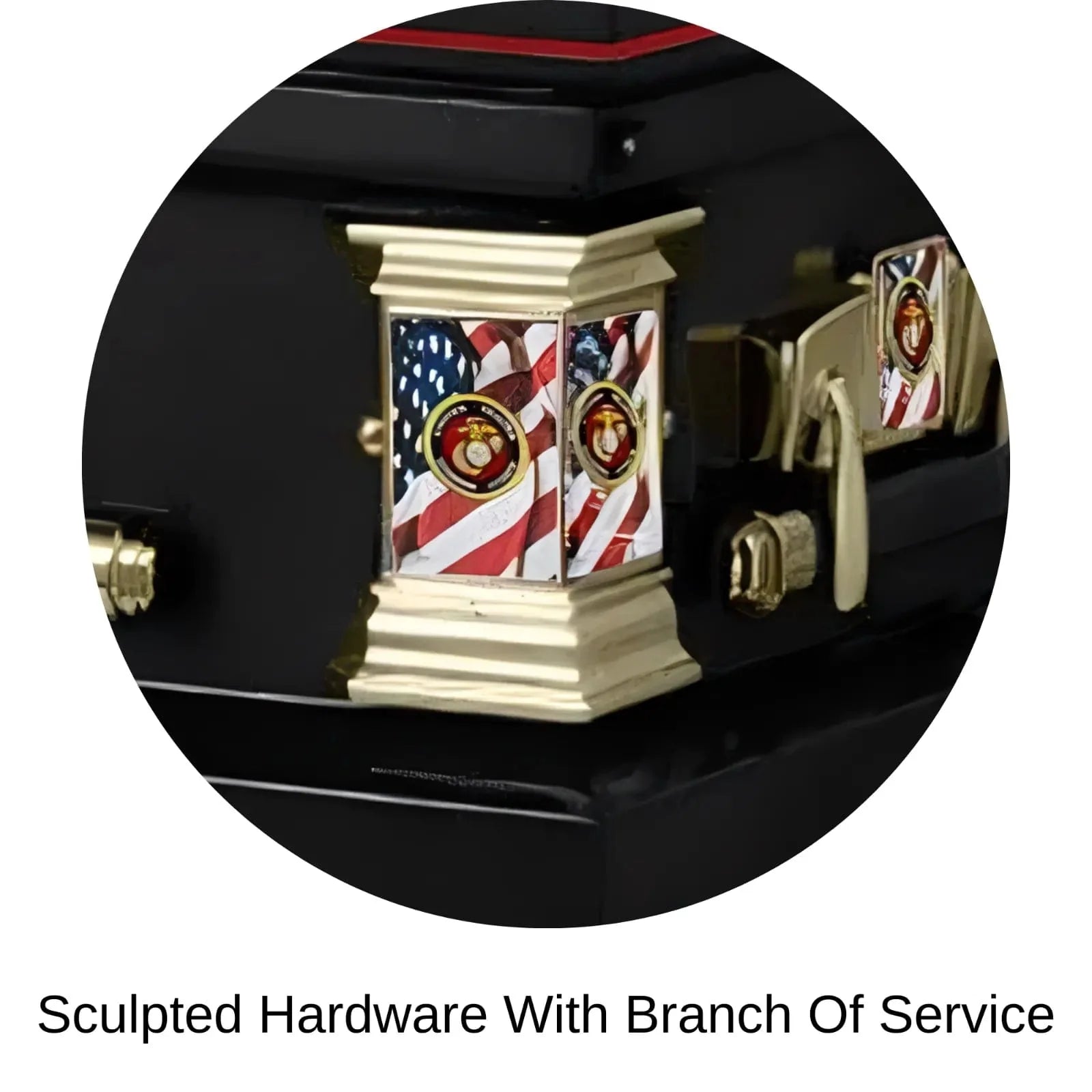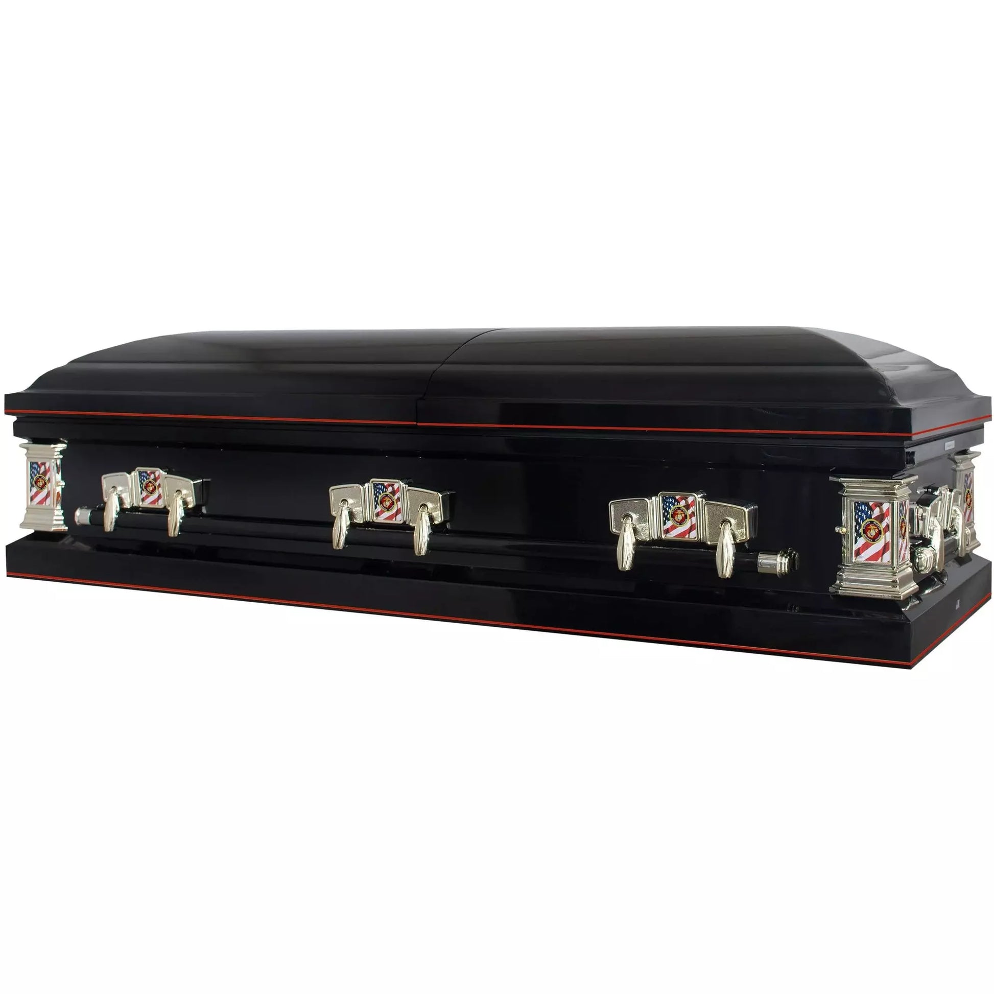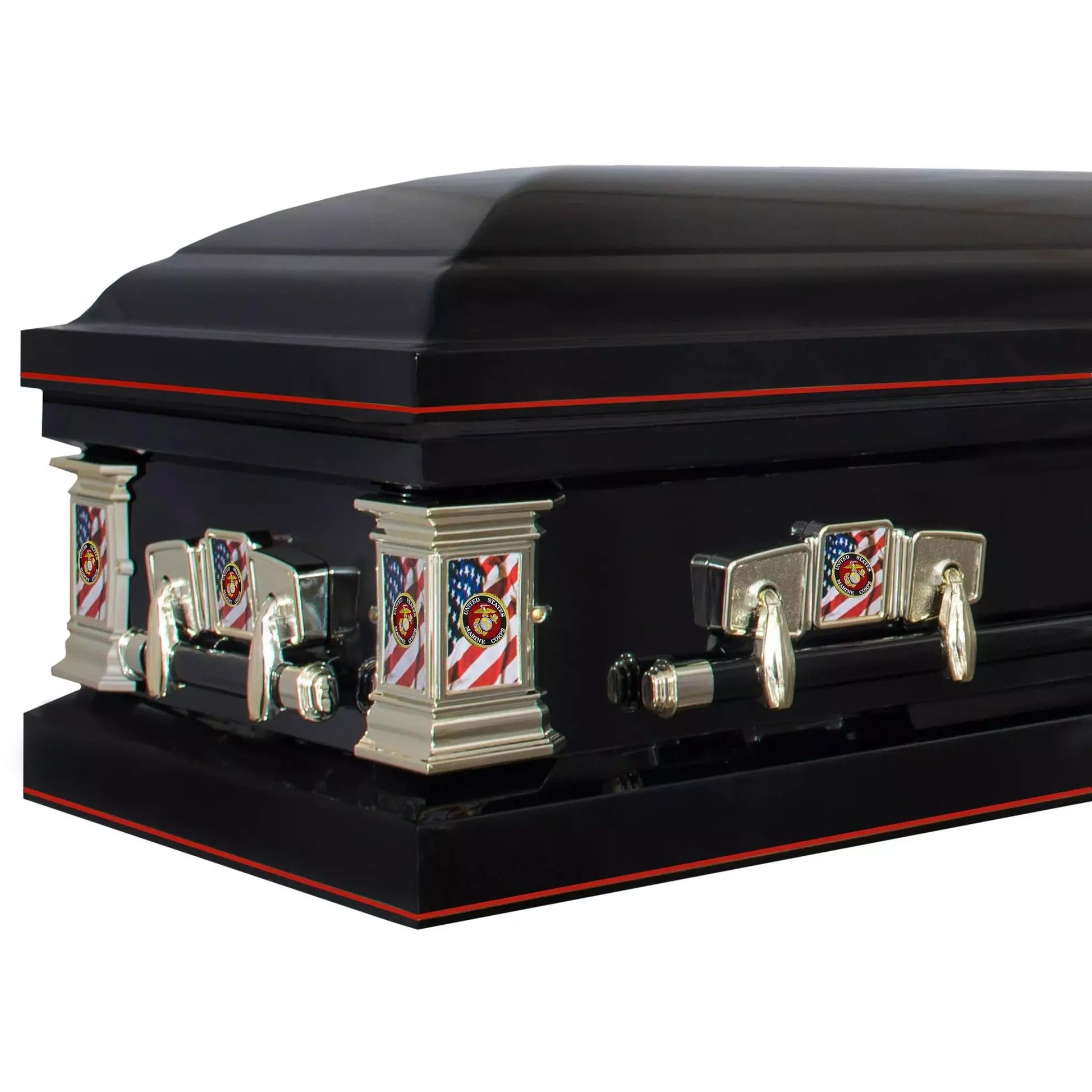 The Regal Patriot Classic Marines steel casket is handcrafted with a high gloss finish and adorned with tasteful national accents such as an embroidered branch of service head panel and matching metal hardware. This dignified Marines casket is fit to honor a loved one's career of duty and service to our great country.