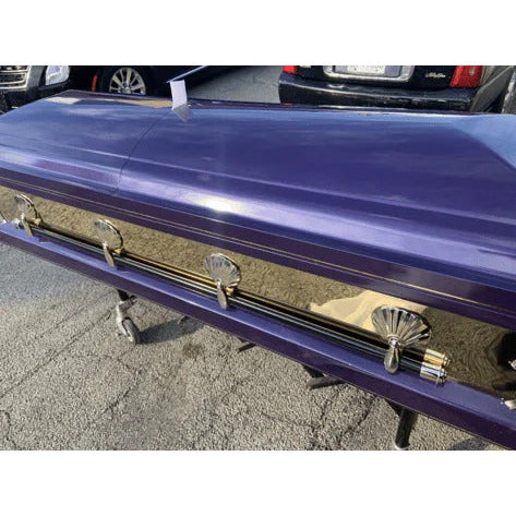 The Regal Emerald Series steel casket is alluring and stunning due to its 360 degree reflective panel. Seashell hardware accents this memorable casket and high-gloss paint compliments the polished finish. A locking mechanism and rubber gasket is included.