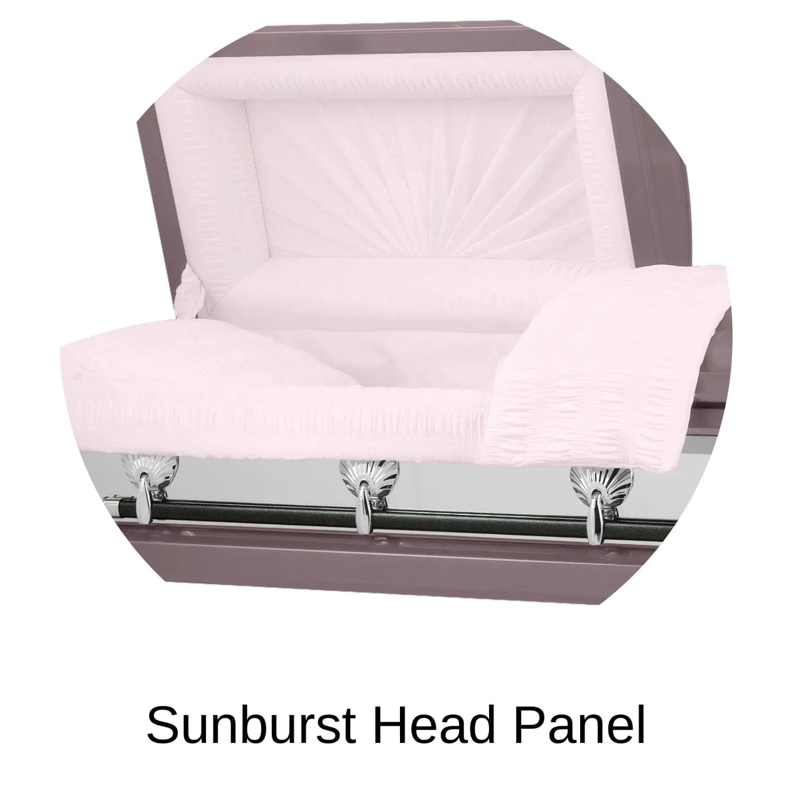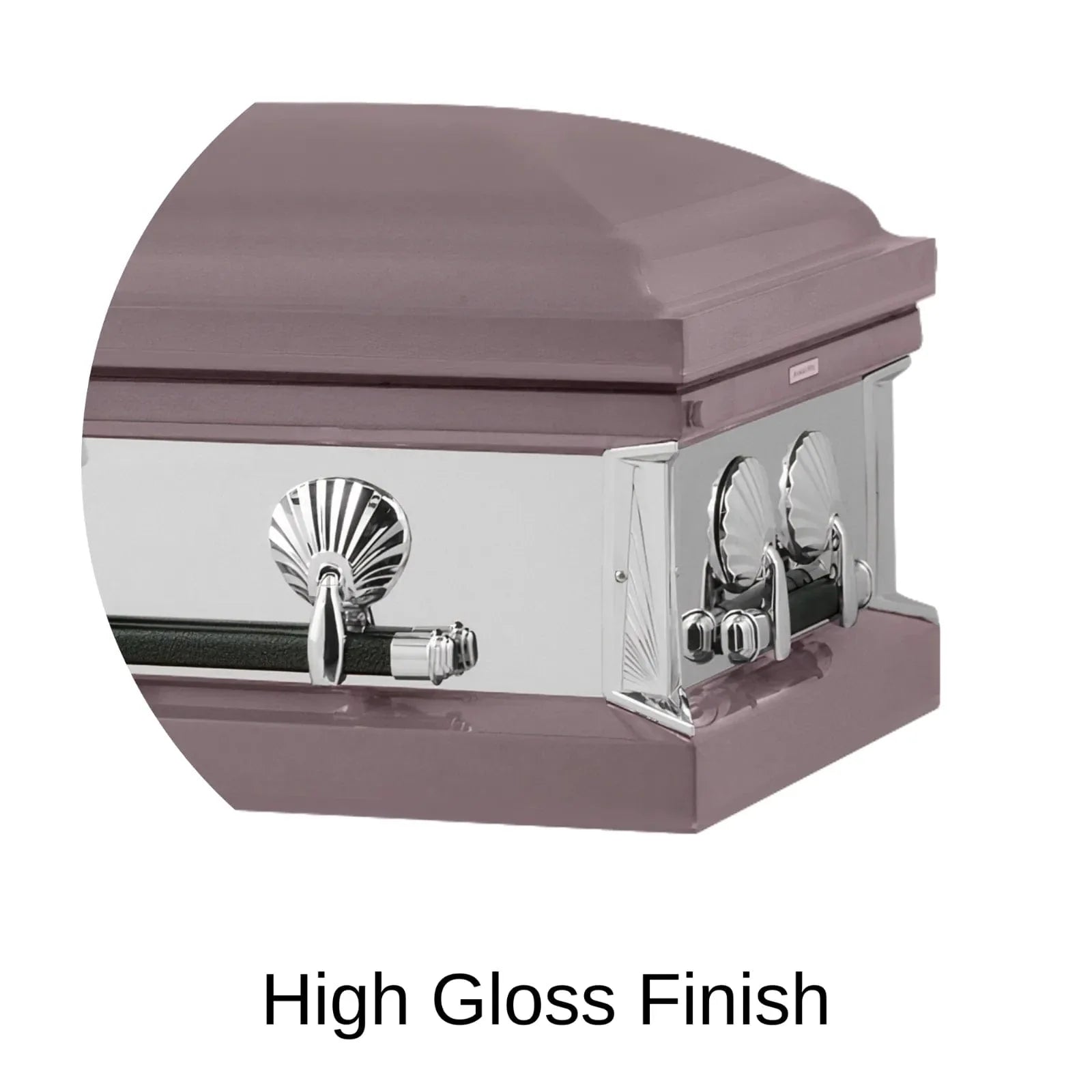 The Regal Emerald Series steel casket is alluring and stunning due to its 360 degree reflective panel. Seashell hardware accents this memorable casket and high-gloss paint compliments the polished finish. A locking mechanism and rubber gasket is included.
