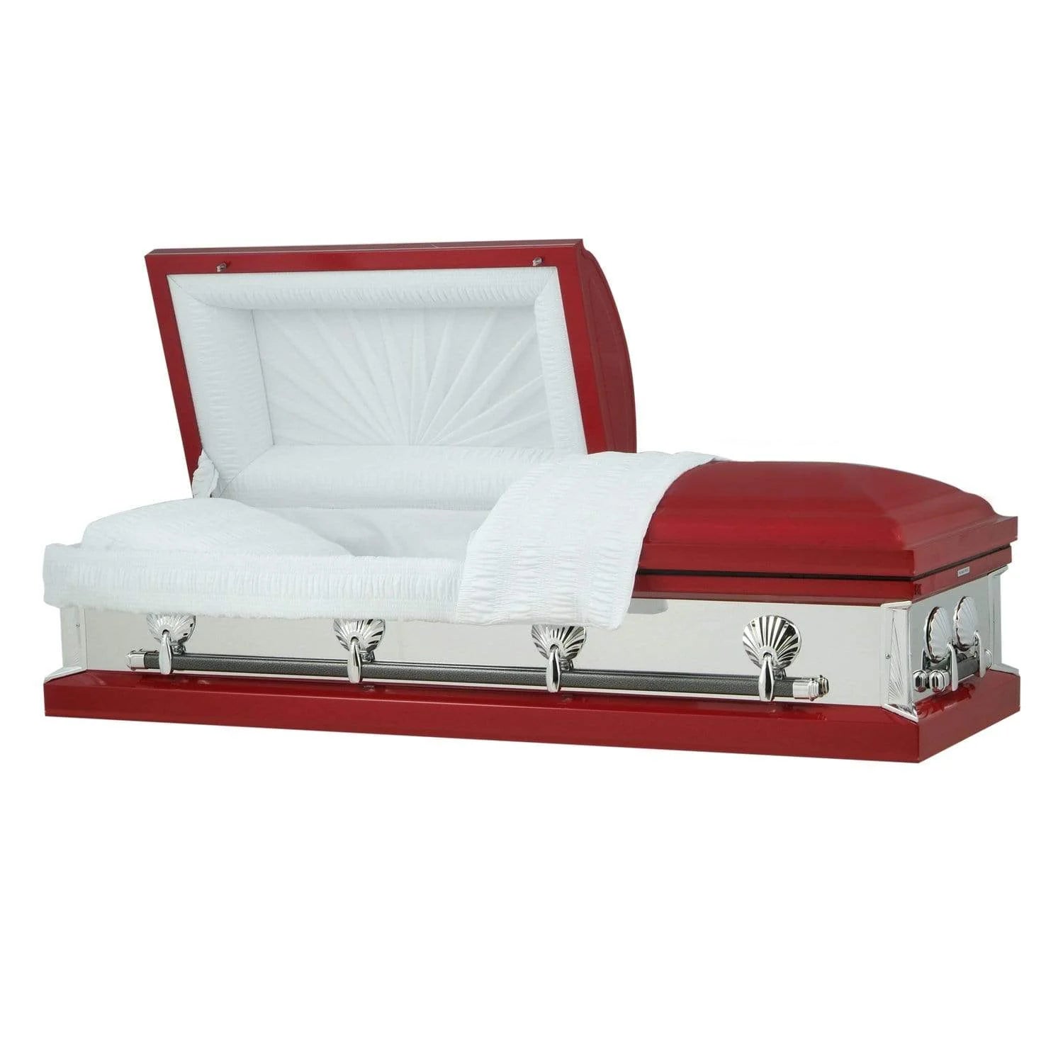 The Regal Emerald Series steel casket is alluring and stunning due to its 360 degree reflective panel. Seashell hardware accents this memorable casket and high-gloss paint compliments the polished finish. A locking mechanism and rubber gasket is included.