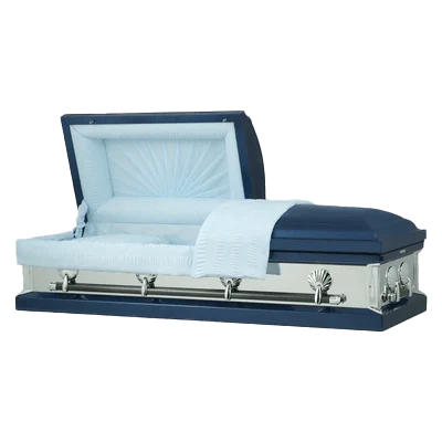 The Regal Emerald Series steel casket is alluring and stunning due to its 360 degree reflective panel. Seashell hardware accents this memorable casket and high-gloss paint compliments the polished finish. A locking mechanism and rubber gasket is included.