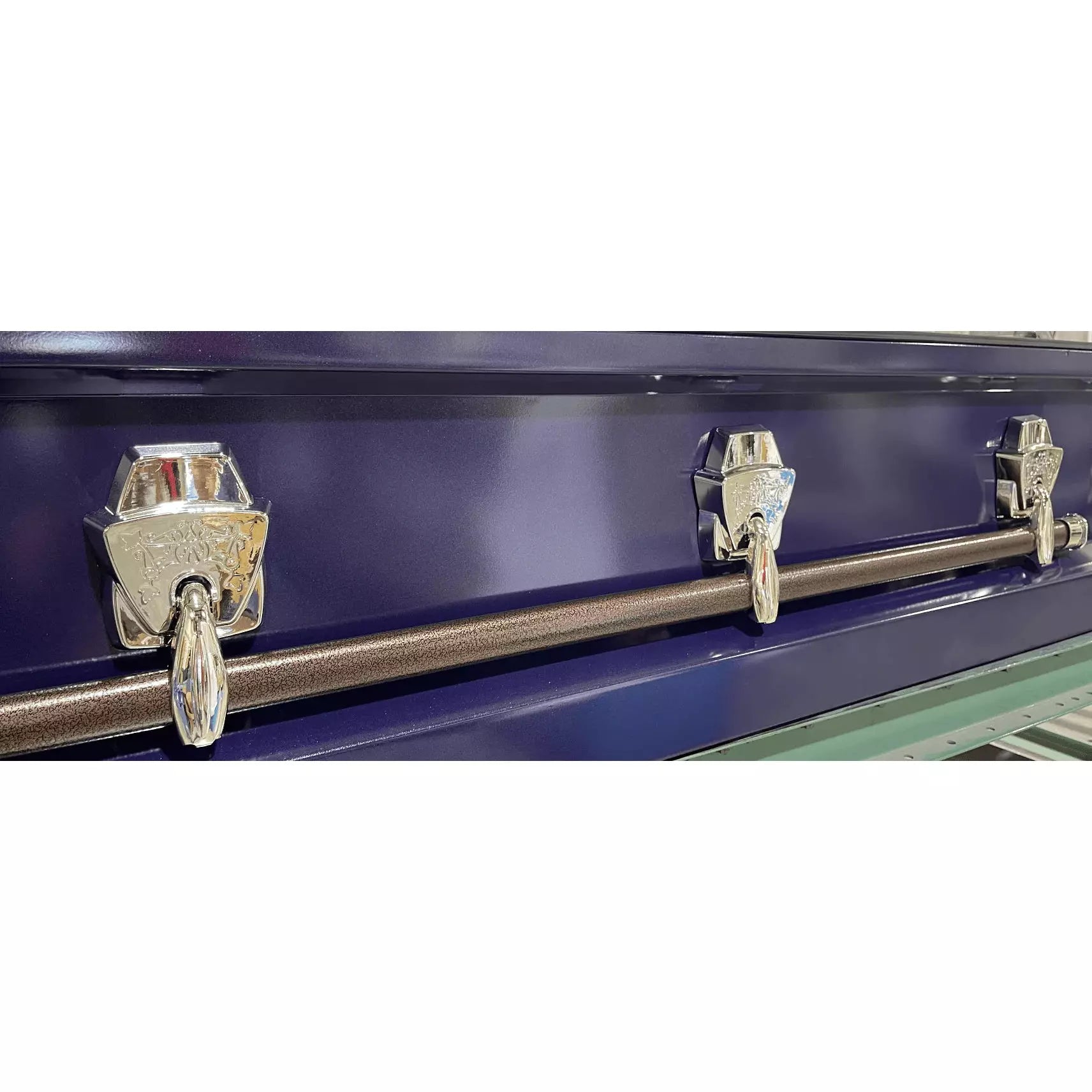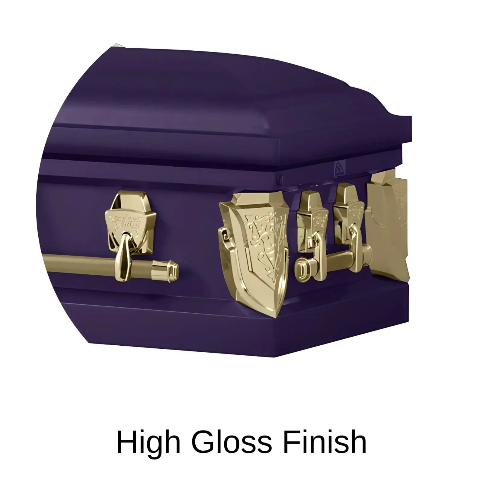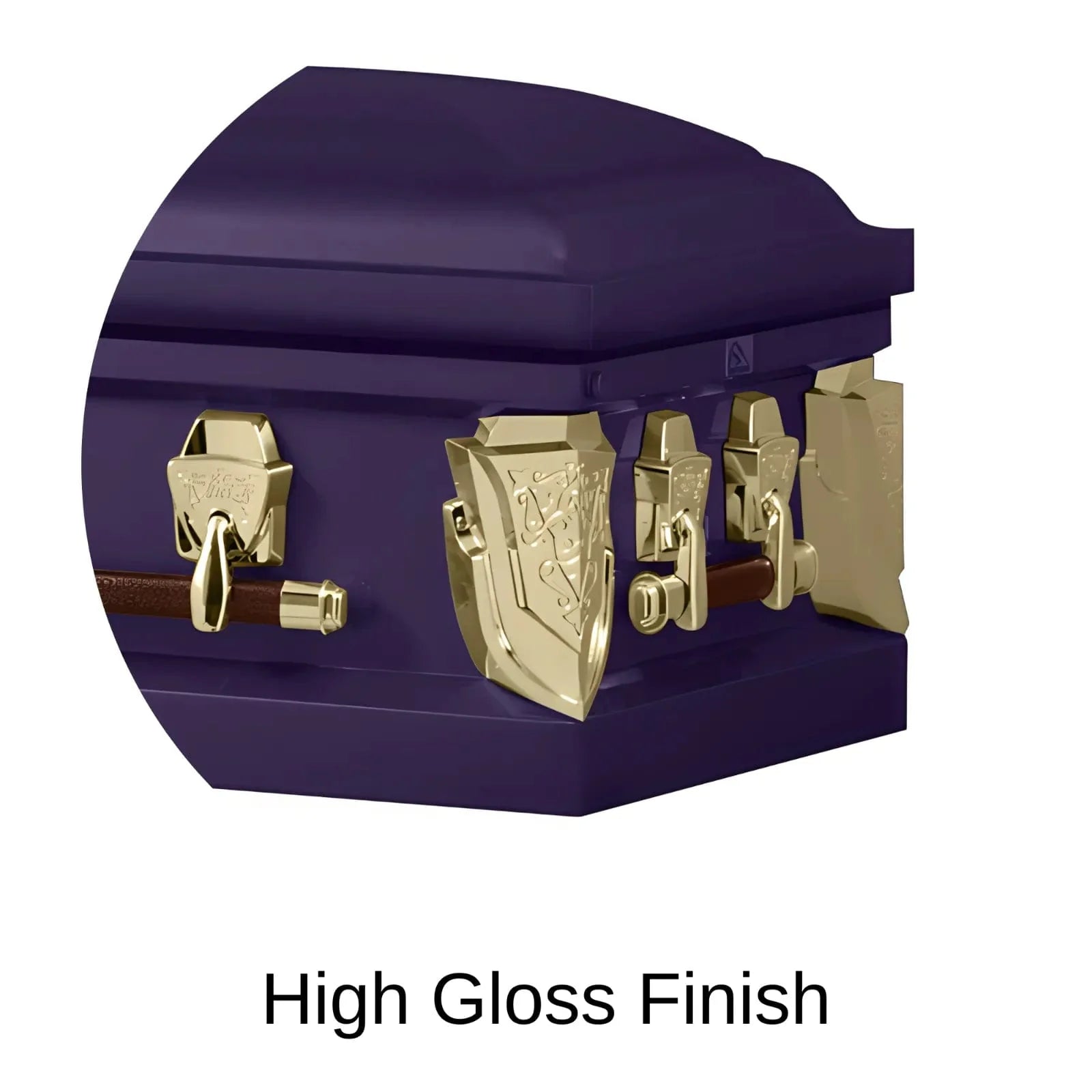 The Regal Imperial Series has the accoutrements of a luxury casket, at a fraction of the price. Built from upgraded 18-gauge steel, the interior is lined with velvet and has a tufted head panel. The exterior is completed by intricate metal hardware and swingbar handles. This distinguished casket is available in over 20 color schemes and comes standard with a rubber gasket and locking mechanism.