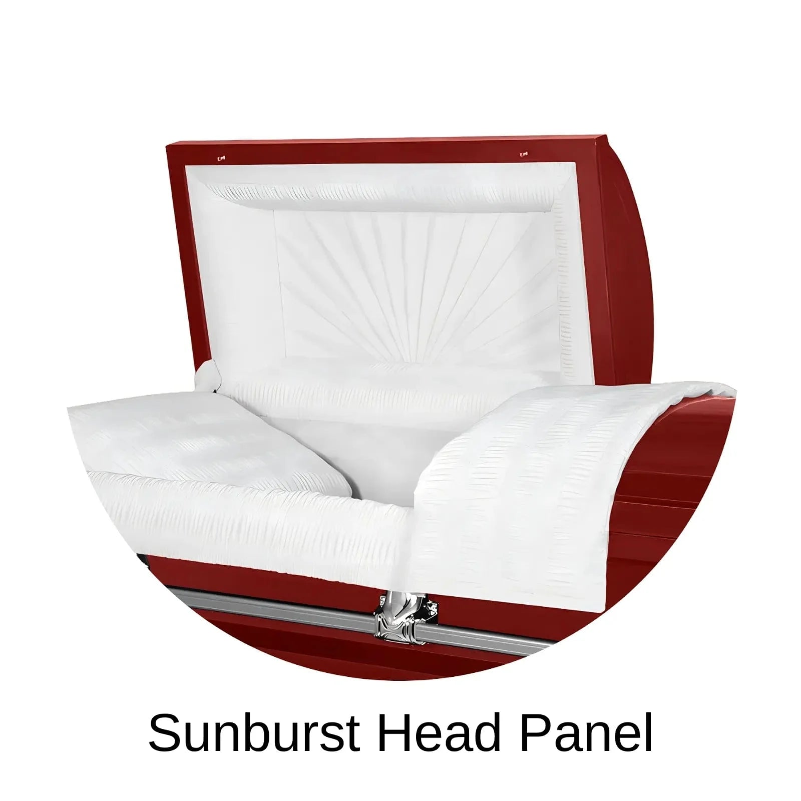 Our most popular model, the Monarch Series steel casket is handcrafted with a high gloss finish at a competitive price. It is available in over 20 colors and comes standard with a rubber gasket and locking mechanism.