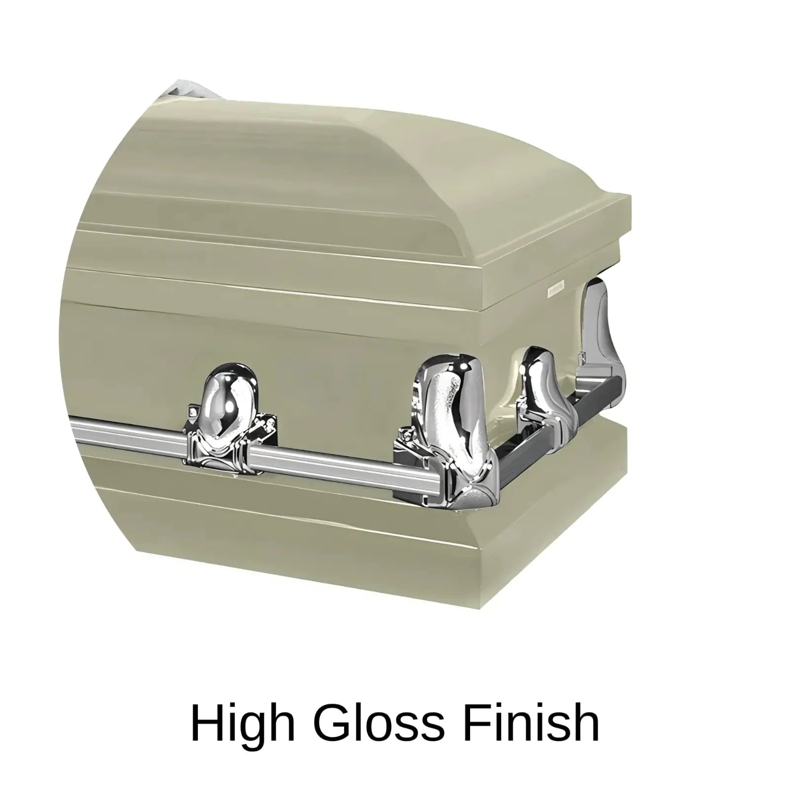 Our most popular model, the Monarch Series steel casket is handcrafted with a high gloss finish at a competitive price. It is available in over 20 colors and comes standard with a rubber gasket and locking mechanism.