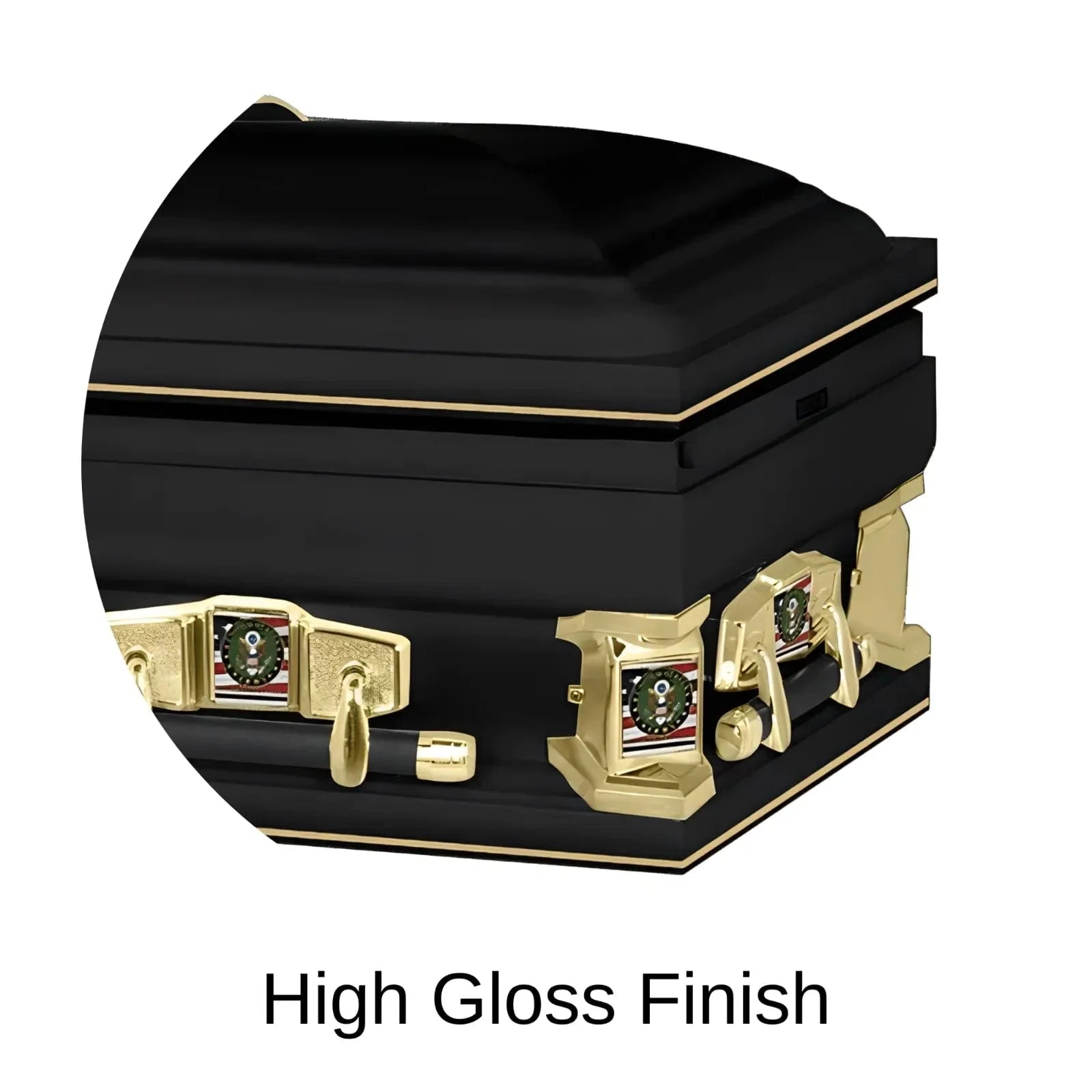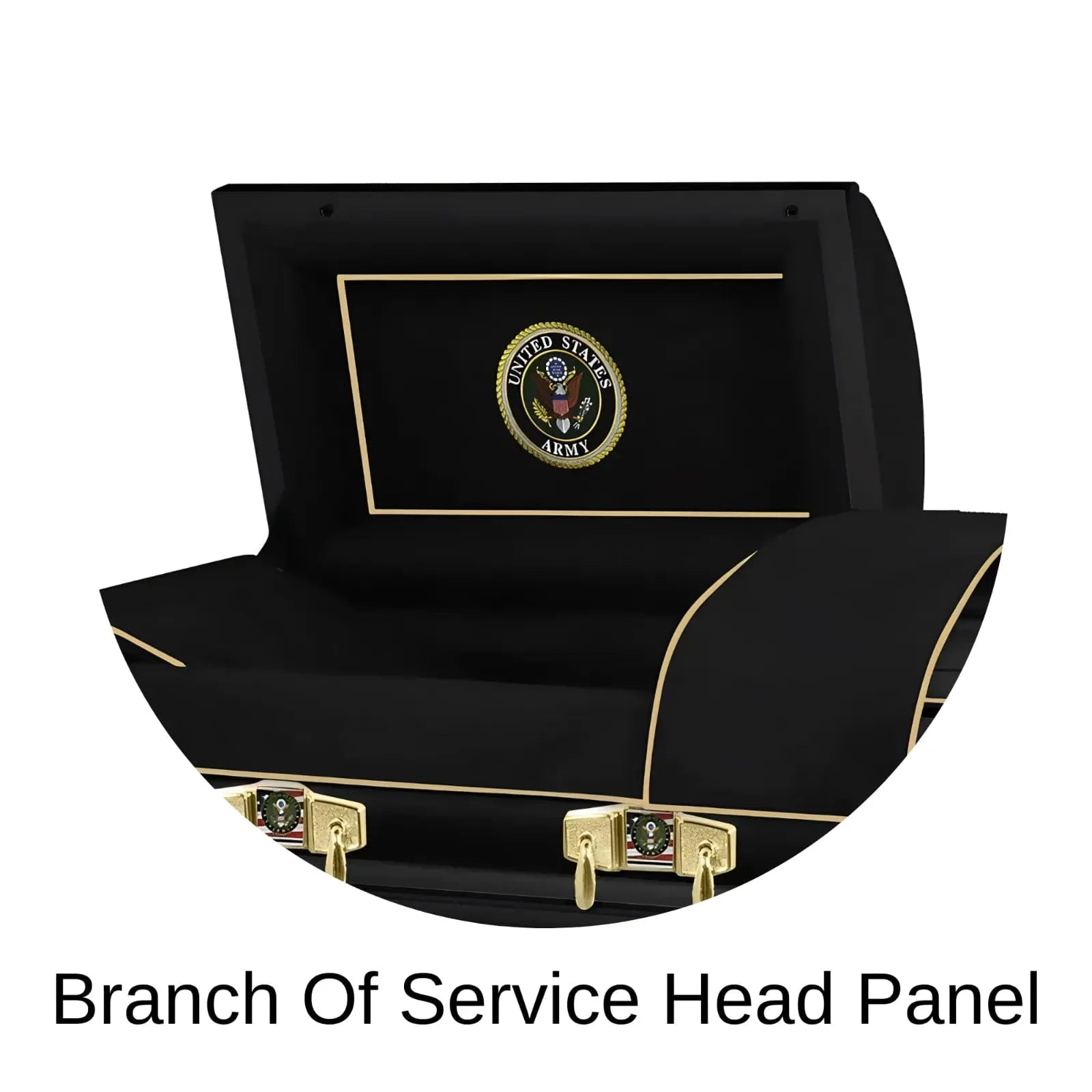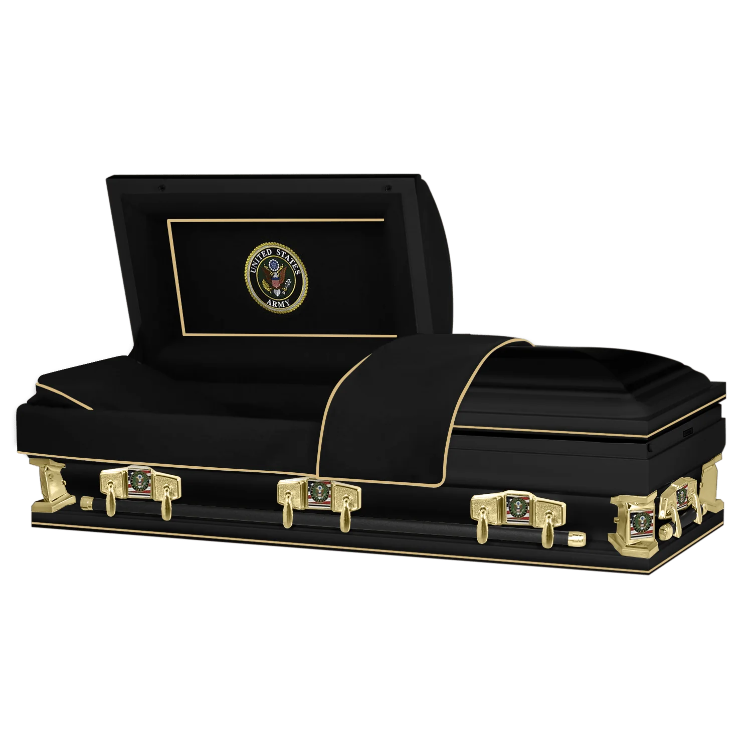 The Regal Patriot Classic XL Army steel casket is handcrafted and oversize with a high gloss finish and adorned with tasteful national accents such as an embroidered branch of service head panel and matching metal hardware. This dignified Army casket is fit to honor a loved one's career of duty and service to our great country and is available from 28" to 36" wide.