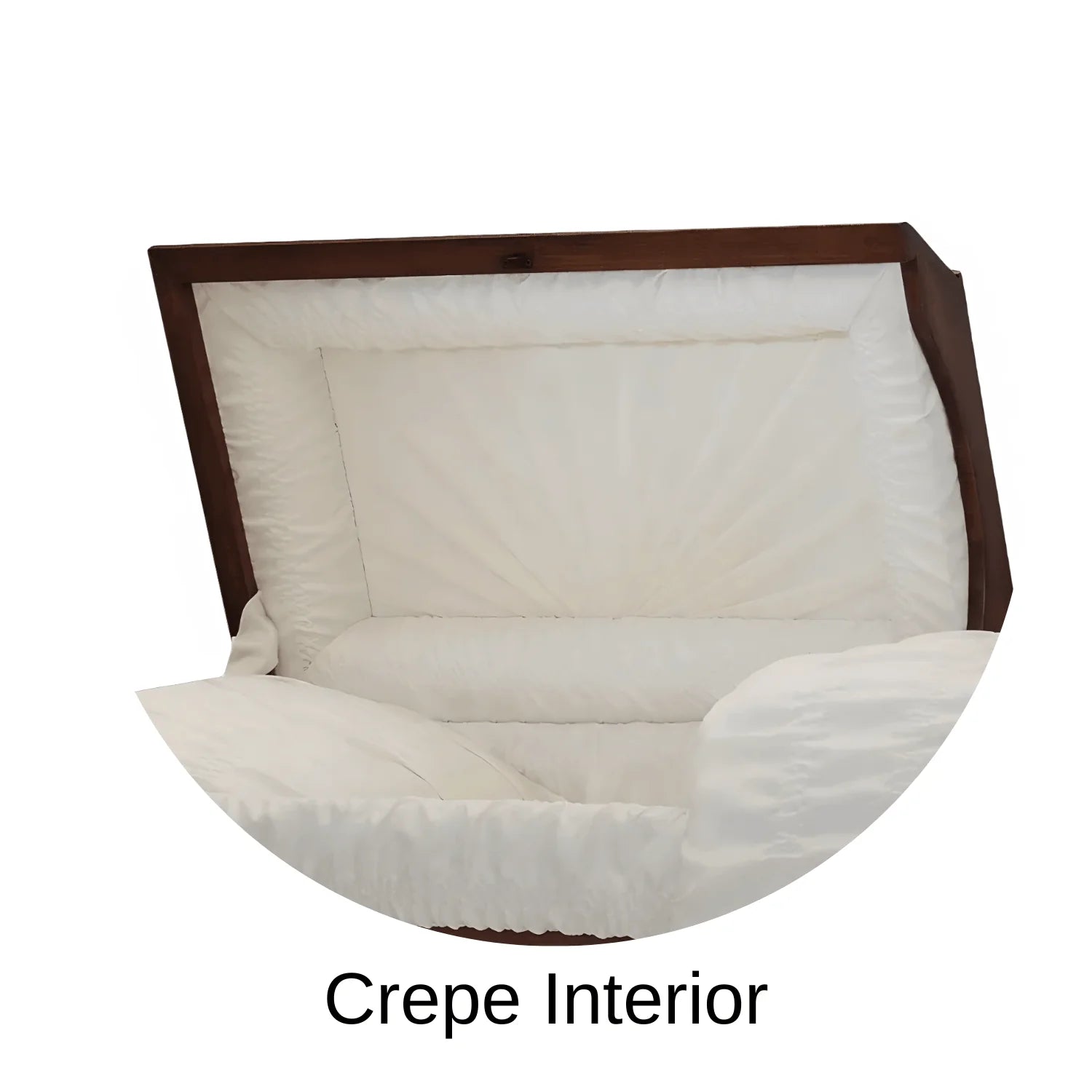 The Regal Rainier is a poplar hardwood casket, which is the most popular casket material. This flat-top casket has sharp lines and comes fully assembled in a satin walnut finish with a soft crepe interior.
