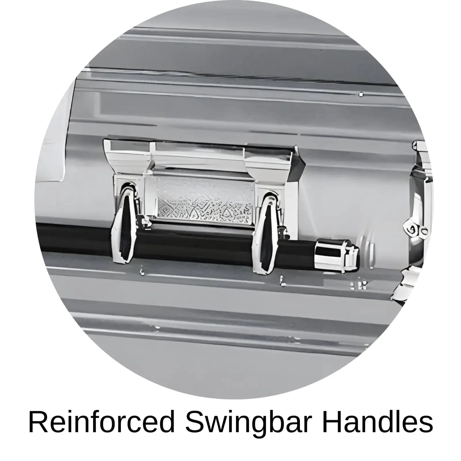 For the king or queen in your life, this casket embodies a regal resting place. Built from stainless steel, both strong and resistant to corrosion, this coffin is nothing short of the finest you can buy. The brushed high gloss finish is eye catching, while the interior is laden with soft tufted velvet. Reinforced swingbar handles hug the casket walls when not in use. Available in a multiple polished finishes, this casket comes with a rubber gasket and locking mechanism.