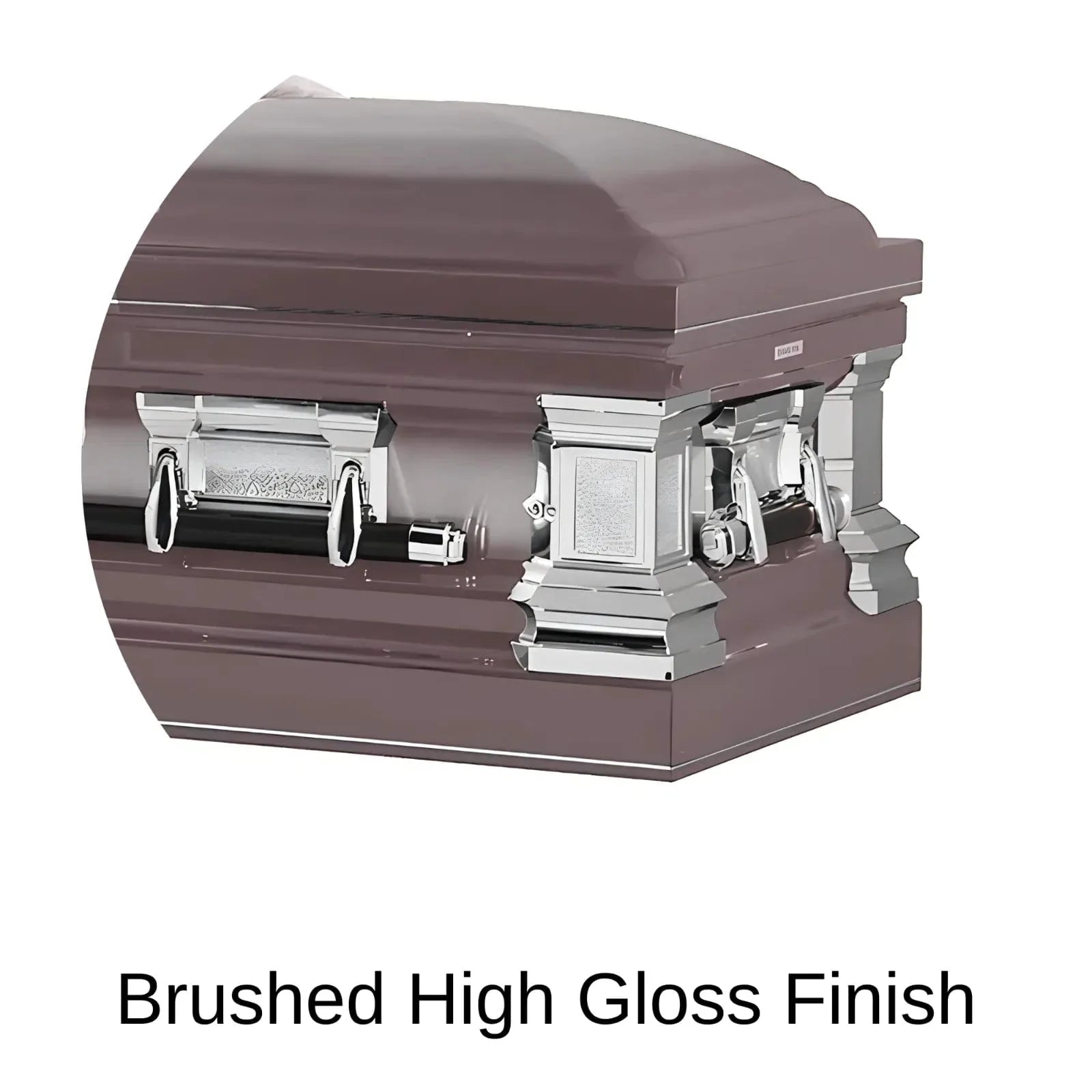 For the king or queen in your life, this casket embodies a regal resting place. Built from stainless steel, both strong and resistant to corrosion, this coffin is nothing short of the finest you can buy. The brushed high gloss finish is eye catching, while the interior is laden with soft tufted velvet. Reinforced swingbar handles hug the casket walls when not in use. Available in a multiple polished finishes, this casket comes with a rubber gasket and locking mechanism.