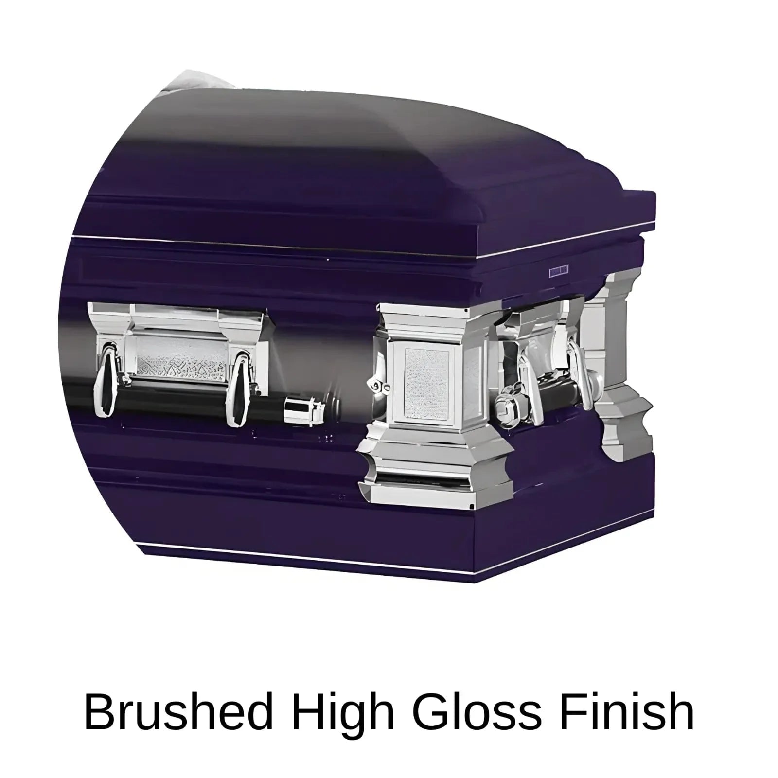 For the king or queen in your life, this casket embodies a regal resting place. Built from stainless steel, both strong and resistant to corrosion, this coffin is nothing short of the finest you can buy. The brushed high gloss finish is eye catching, while the interior is laden with soft tufted velvet. Reinforced swingbar handles hug the casket walls when not in use. Available in a multiple polished finishes, this casket comes with a rubber gasket and locking mechanism.