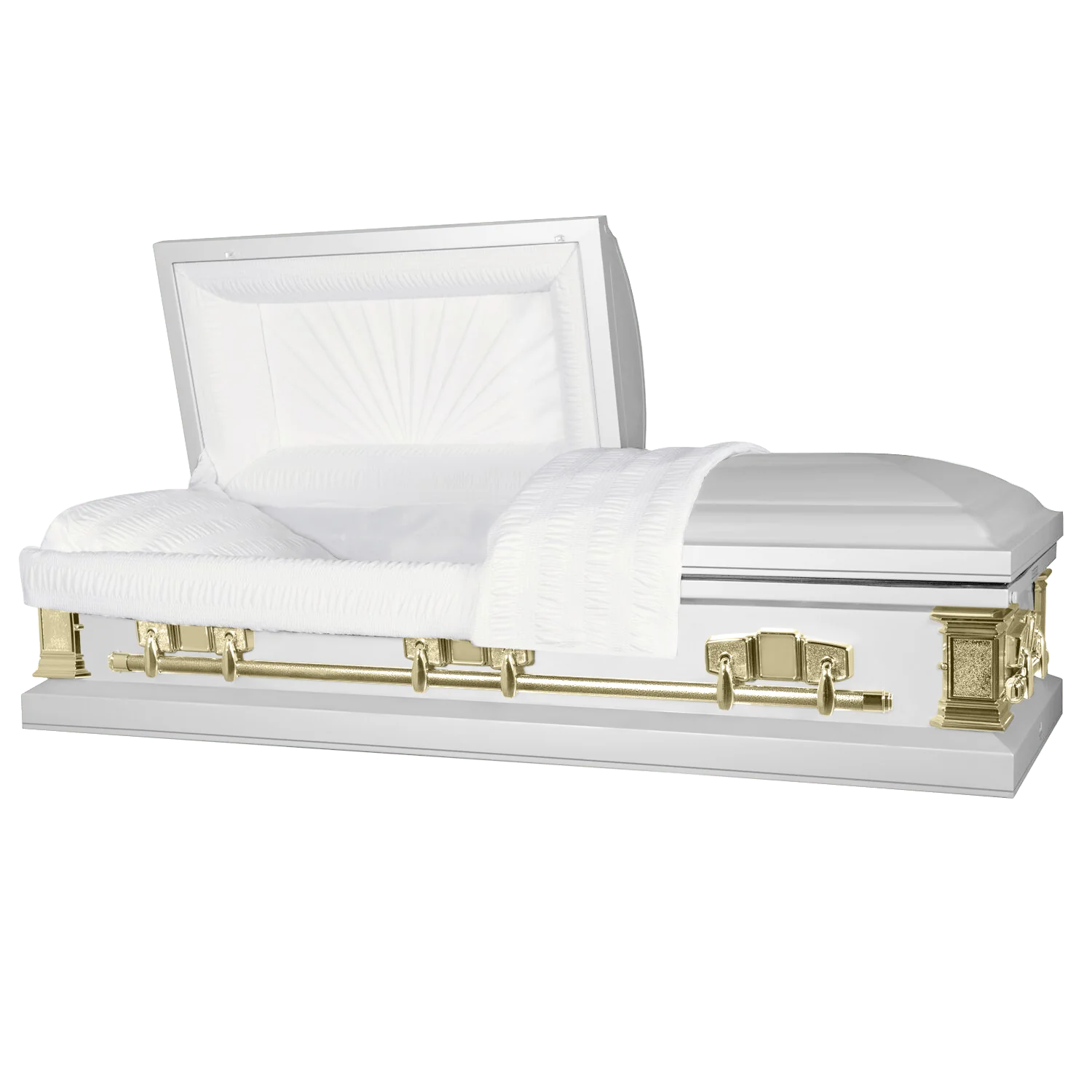 The Regal Triumph series steel casket is handcrafted with a high gloss finish and projects splendor with its metal accents and reinforced swingbar handles. It is available in a variety of colors and comes standard with a rubber gasket and locking mechanism.