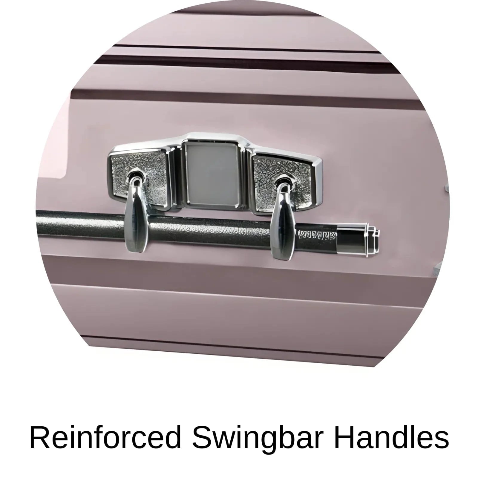 The Regal Triumph series steel casket is handcrafted with a high gloss finish and projects splendor with its metal accents and reinforced swingbar handles. It is available in a variety of colors and comes standard with a rubber gasket and locking mechanism.