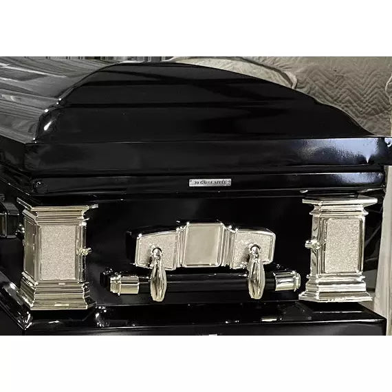 The Regal Triumph series steel casket is handcrafted with a high gloss finish and projects splendor with its metal accents and reinforced swingbar handles. It is available in a variety of colors and comes standard with a rubber gasket and locking mechanism.