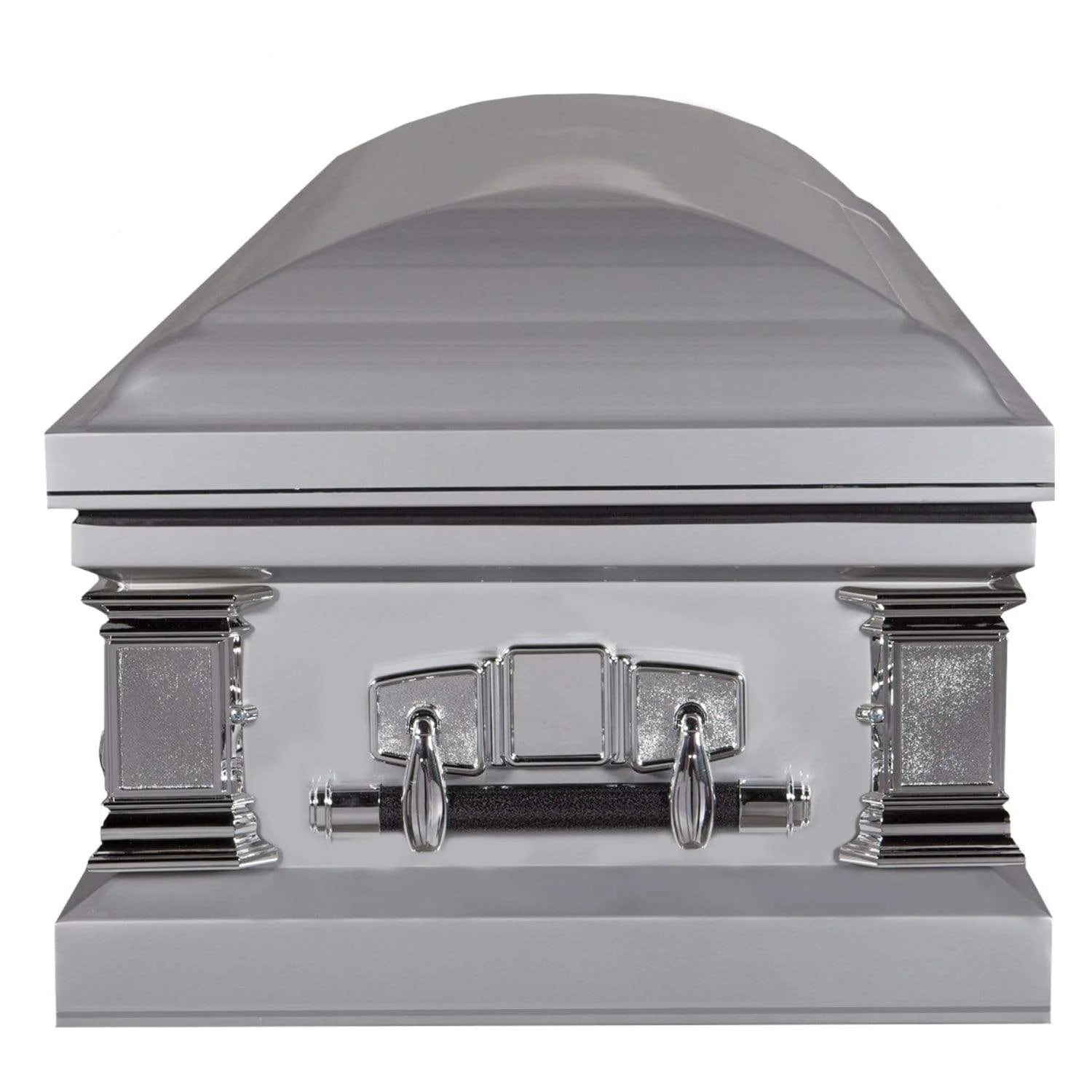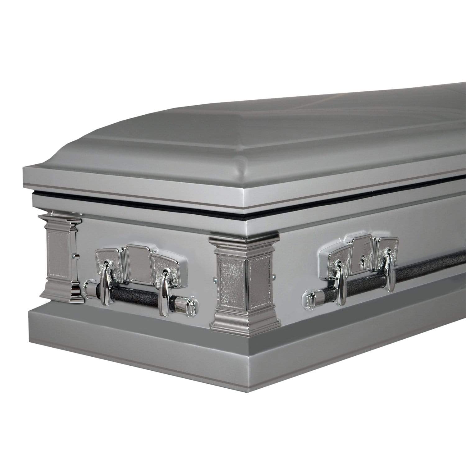 The Regal Triumph series steel casket is handcrafted with a high gloss finish and projects splendor with its metal accents and reinforced swingbar handles. It is available in a variety of colors and comes standard with a rubber gasket and locking mechanism.