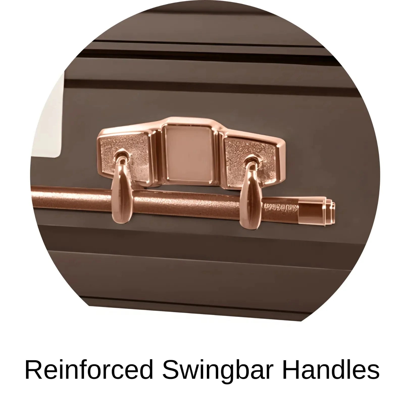 The Regal Triumph series steel casket is handcrafted with a high gloss finish and projects splendor with its metal accents and reinforced swingbar handles. It is available in a variety of colors and comes standard with a rubber gasket and locking mechanism.